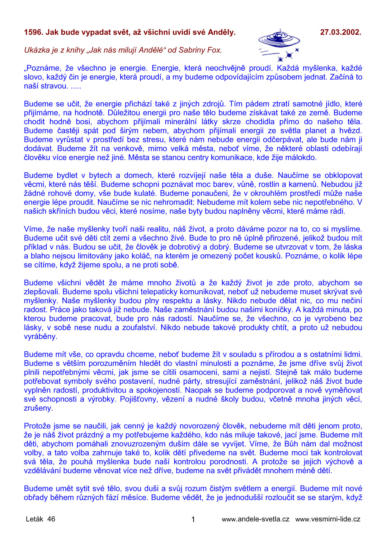 | JAK BUDE VYPADAT SVĚT AŽ UVIDÍ SVÉ ANDĚLY ? |