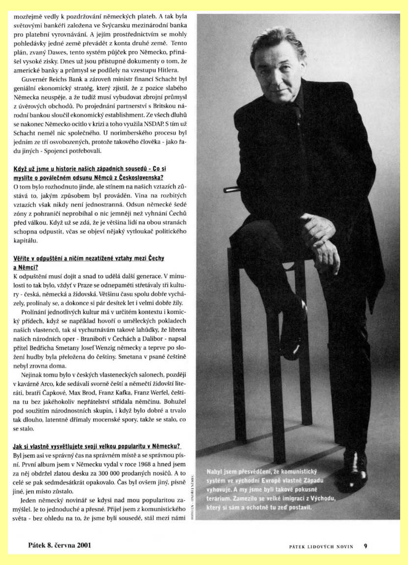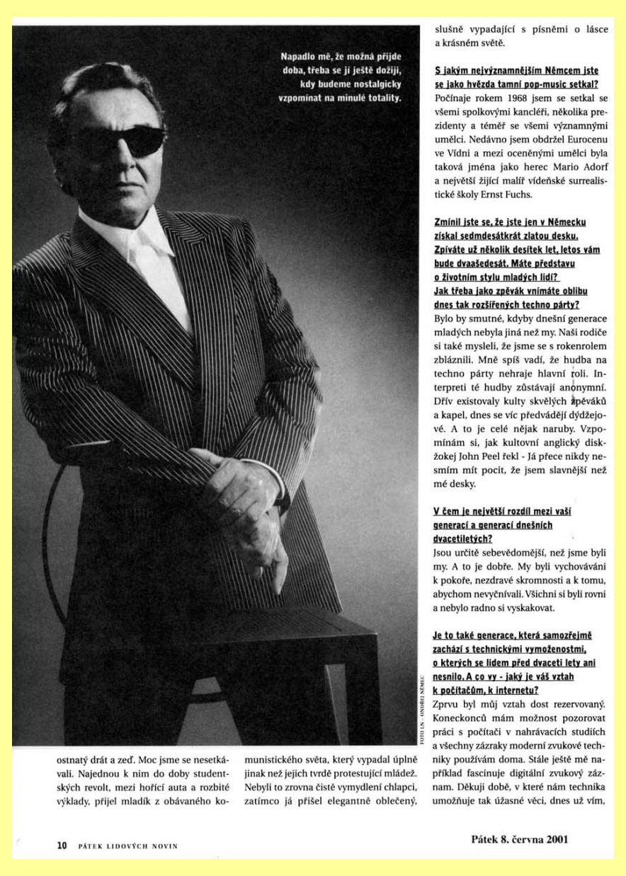 65 Karel Gott - Bojím se o tento svět (8.6.2001): textová verze, obrázková verze: