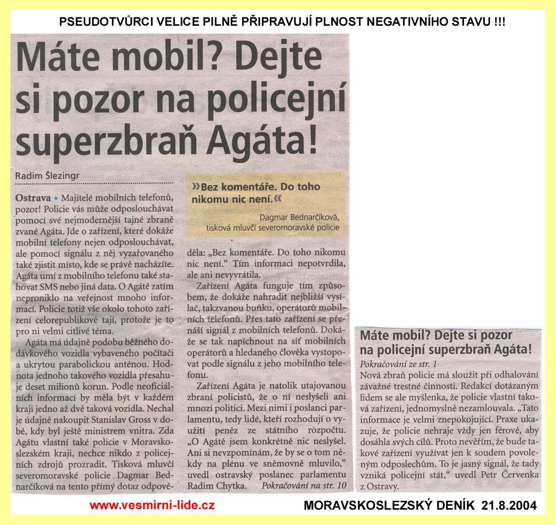 REDAKCE MAJÍ POVINNOST PUBLIKOVAT I NÁZORY, S NIMIŽ NE VŽDY SOUHLASÍ. SVOBODA PROJEVU, ZEJMÉNA SVOBODA TISKU, JE ZARUČENA ÚSTAVOU ČR, MEZINÁRODNÍM PAKTEM O OBČANSKÝCH A POLITICKÝCH PRÁVECH PUBLIKOVANÉ VE VYHLÁŠCE MZV Č. 120/196 SB. A LISTINOU ZÁKLADNÍCH PRÁV A SVOBOD VYHLÁŠENOU POD Č. 23/1991 SB. SVOBODA PROJEVU A PRÁVO NA INFORMACE JSOU ZÁKONEM ZARUČENY. KAŽDÝ MÁ PRÁVO VYJADŘOVAT SVÉ NÁZORY SLOVEM, PÍSMEM, TISKEM, OBRAZEM NEBO JINÝM ZPŮSOBEM, JAKOŽ I SVOBODNĚ VYHLEDÁVAT, PŘIJÍMAT I ROZŠIŘOVAT IDEJE A INFORMACE. CENZURA JE NEPŘÍPUSTNÁ.