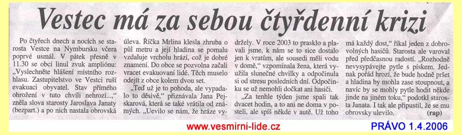 | 341 | Vestec má za sebou čtyřdenní krizi |