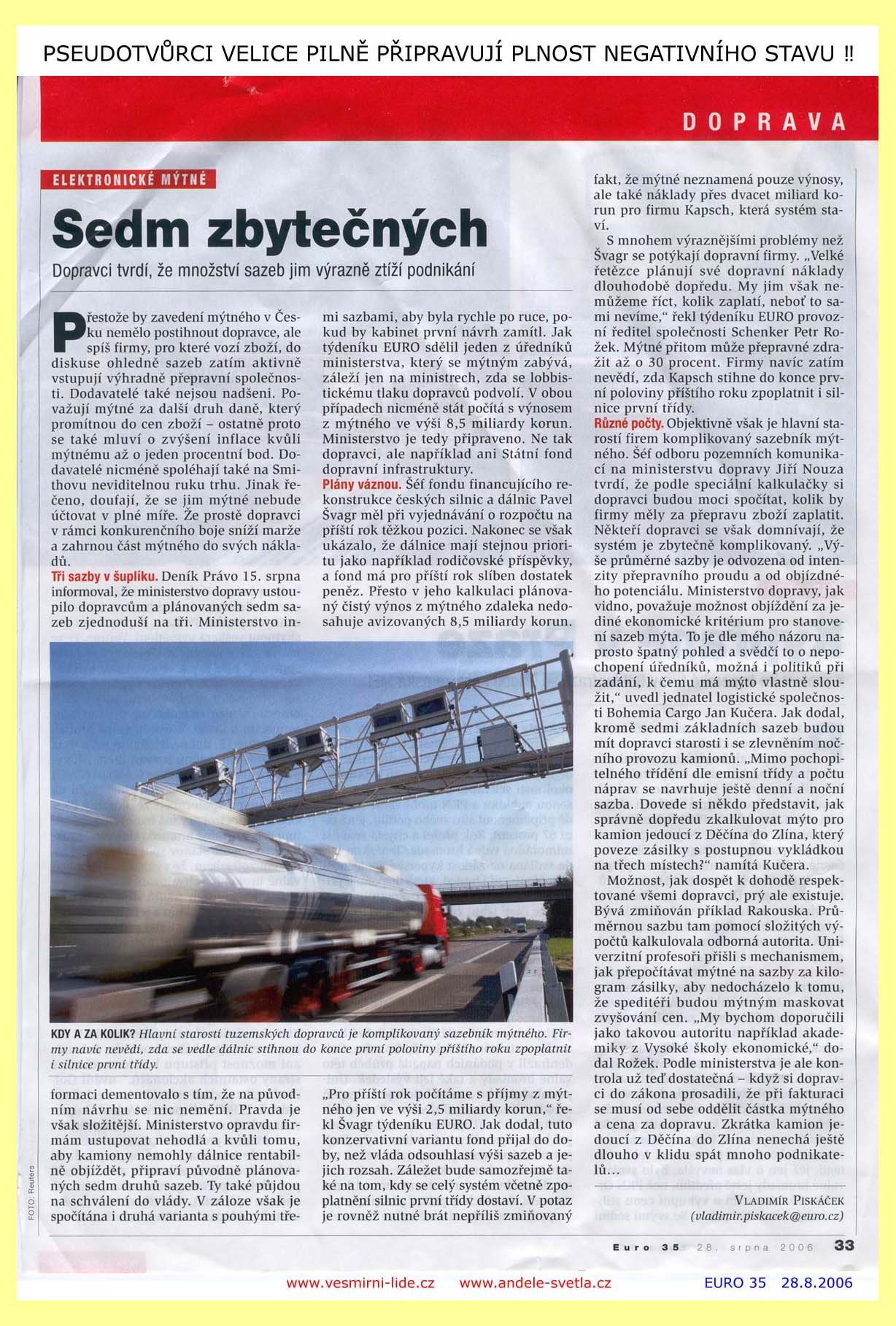 REDAKCE MAJÍ POVINNOST PUBLIKOVAT I NÁZORY, S NIMIŽ NE VŽDY SOUHLASÍ. SVOBODA PROJEVU, ZEJMÉNA SVOBODA TISKU, JE ZARUČENA ÚSTAVOU ČR, MEZINÁRODNÍM PAKTEM O OBČANSKÝCH A POLITICKÝCH PRÁVECH PUBLIKOVANÉ VE VYHLÁŠCE MZV Č. 120/196 SB. A LISTINOU ZÁKLADNÍCH PRÁV A SVOBOD VYHLÁŠENOU POD Č. 23/1991 SB. SVOBODA PROJEVU A PRÁVO NA INFORMACE JSOU ZÁKONEM ZARUČENY. KAŽDÝ MÁ PRÁVO VYJADŘOVAT SVÉ NÁZORY SLOVEM, PÍSMEM, TISKEM, OBRAZEM NEBO JINÝM ZPŮSOBEM, JAKOŽ I SVOBODNĚ VYHLEDÁVAT, PŘIJÍMAT I ROZŠIŘOVAT IDEJE A INFORMACE. CENZURA JE NEPŘÍPUSTNÁ.