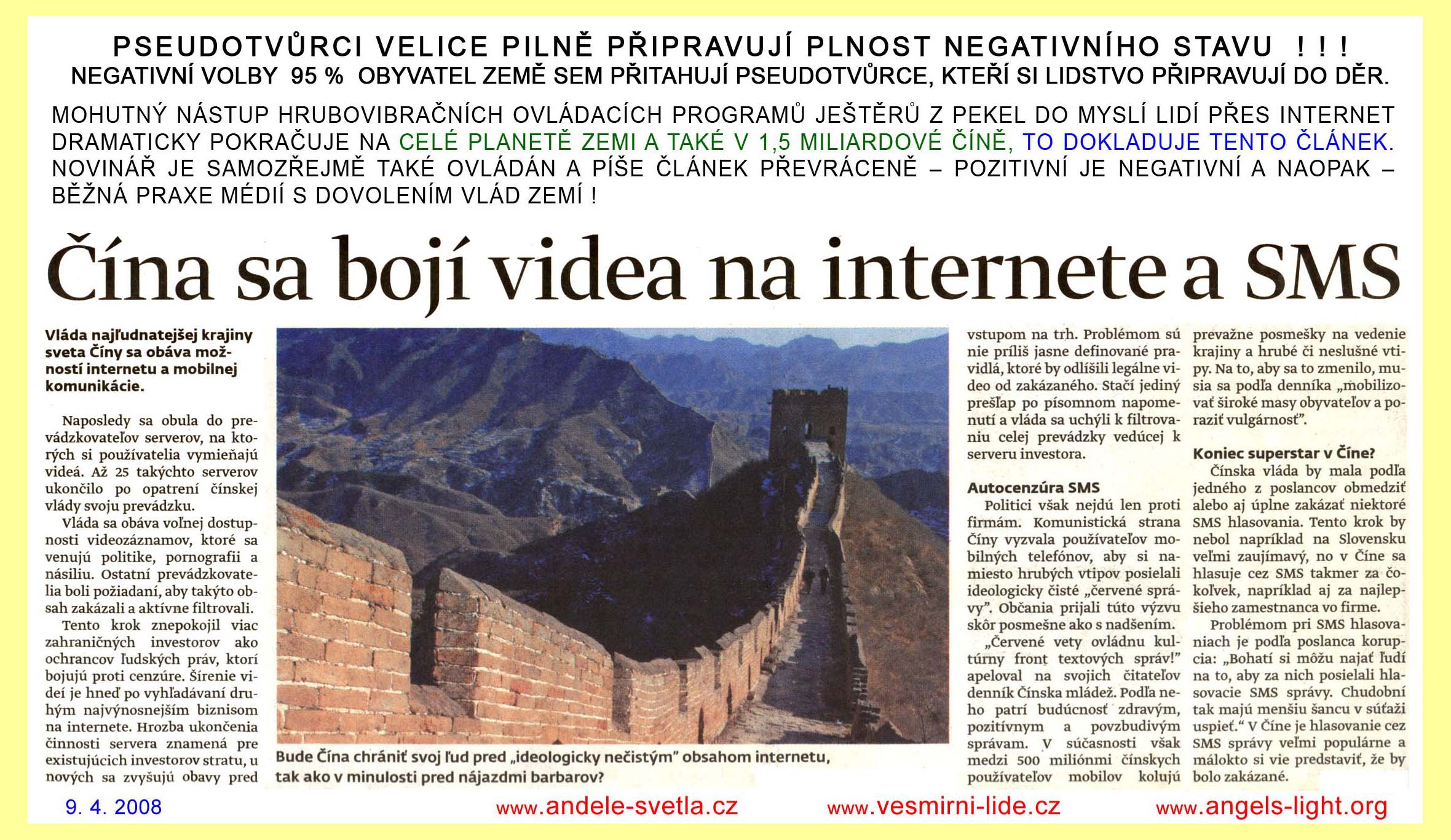 Čína se bojí videa na internetu a SMS |