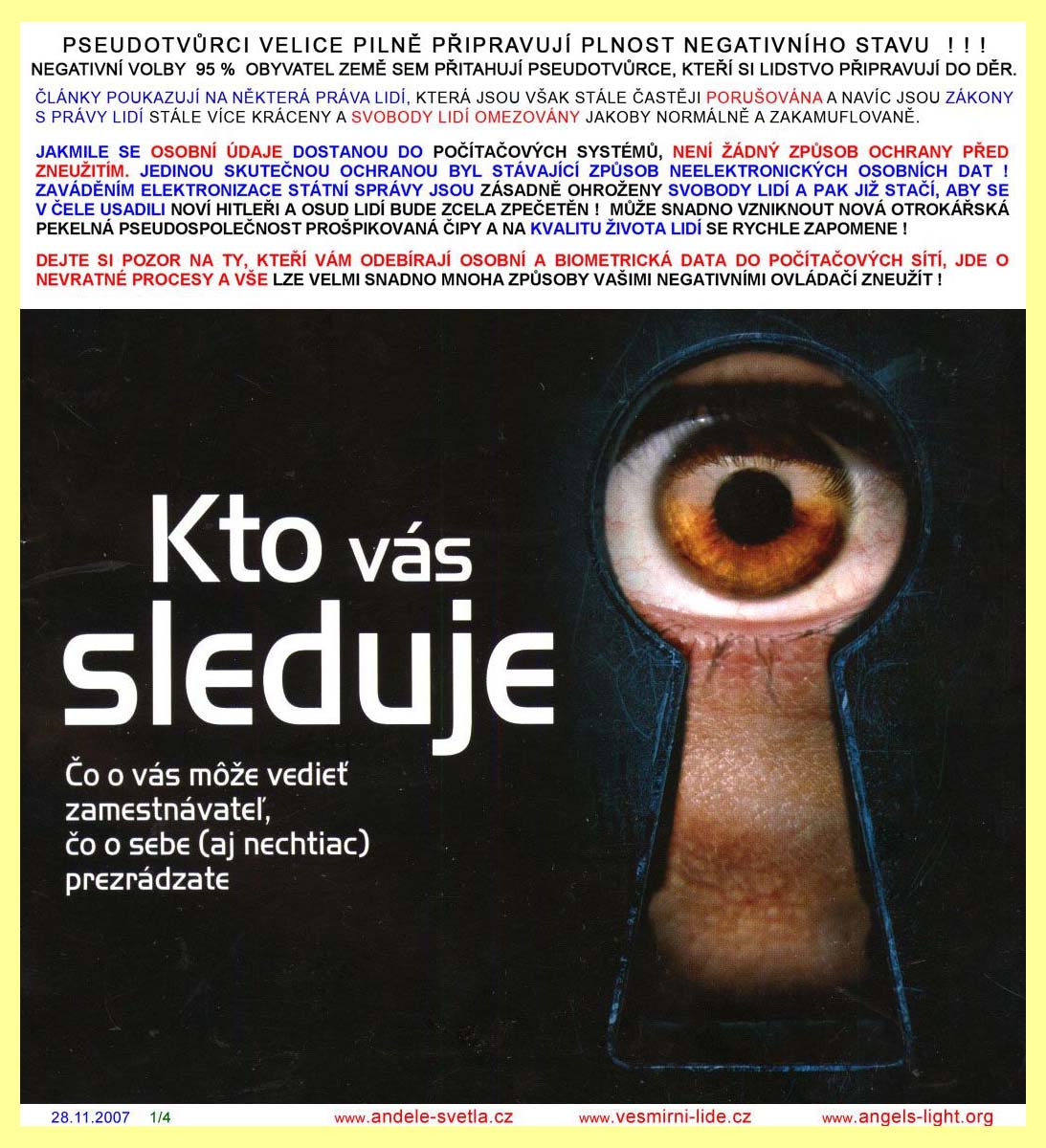 REDAKCE MAJÍ POVINNOST PUBLIKOVAT I NÁZORY, S NIMIŽ NE VŽDY SOUHLASÍ. SVOBODA PROJEVU, ZEJMÉNA SVOBODA TISKU, JE ZARUČENA ÚSTAVOU ČR, MEZINÁRODNÍM PAKTEM O OBČANSKÝCH A POLITICKÝCH PRÁVECH PUBLIKOVANÉ VE VYHLÁŠCE MZV Č. 120/196 SB. A LISTINOU ZÁKLADNÍCH PRÁV A SVOBOD VYHLÁŠENOU POD Č. 23/1991 SB. SVOBODA PROJEVU A PRÁVO NA INFORMACE JSOU ZÁKONEM ZARUČENY. KAŽDÝ MÁ PRÁVO VYJADŘOVAT SVÉ NÁZORY SLOVEM, PÍSMEM, TISKEM, OBRAZEM NEBO JINÝM ZPŮSOBEM, JAKOŽ I SVOBODNĚ VYHLEDÁVAT, PŘIJÍMAT I ROZŠIŘOVAT IDEJE A INFORMACE. CENZURA JE NEPŘÍPUSTNÁ.