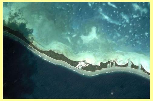 Satelitní snímek jednoho z ostrovů, které zatím stále ještě tvoří Kiribati.